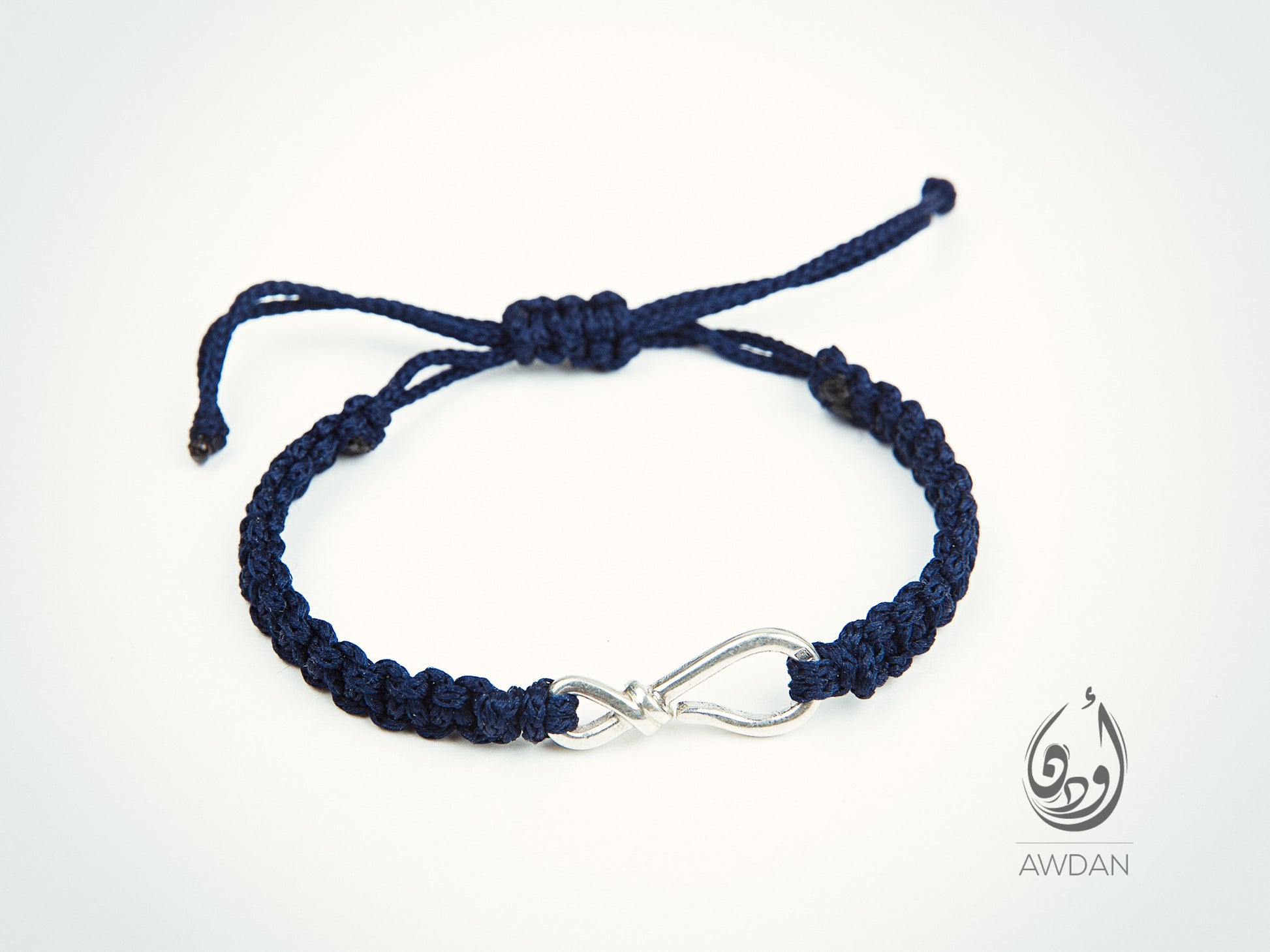 -Sterling silver hook on a woven rope design, blending sturdy craftsmanship with minimalist style for a sleek and versatile accessory.