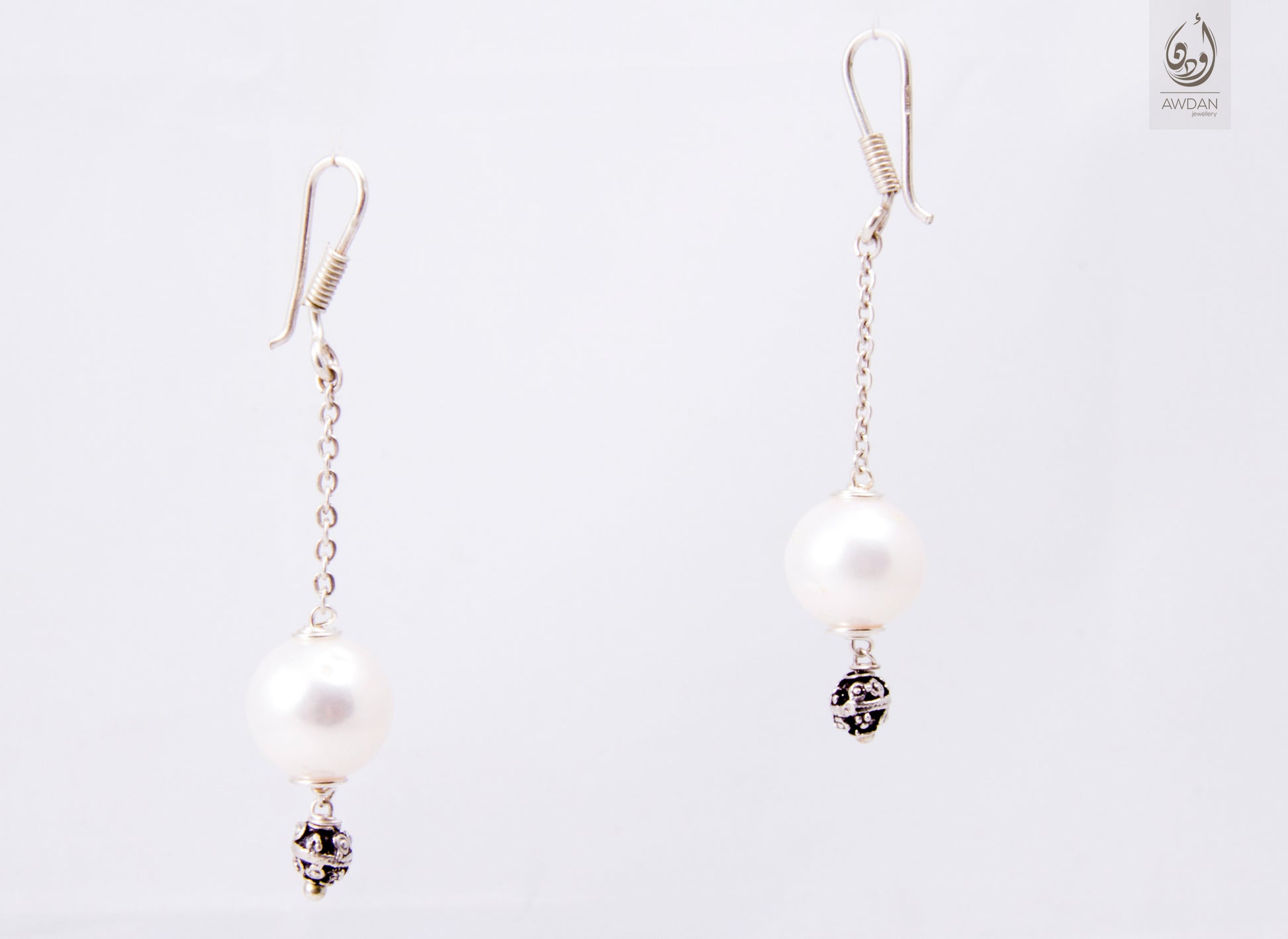 These earrings feature a delicate chain holding a pearl bead topping a smaller silver bead, creating a graceful and refined look. Their elegant design offers a subtle yet captivating accessory that enhances any outfit with understated sophistication.