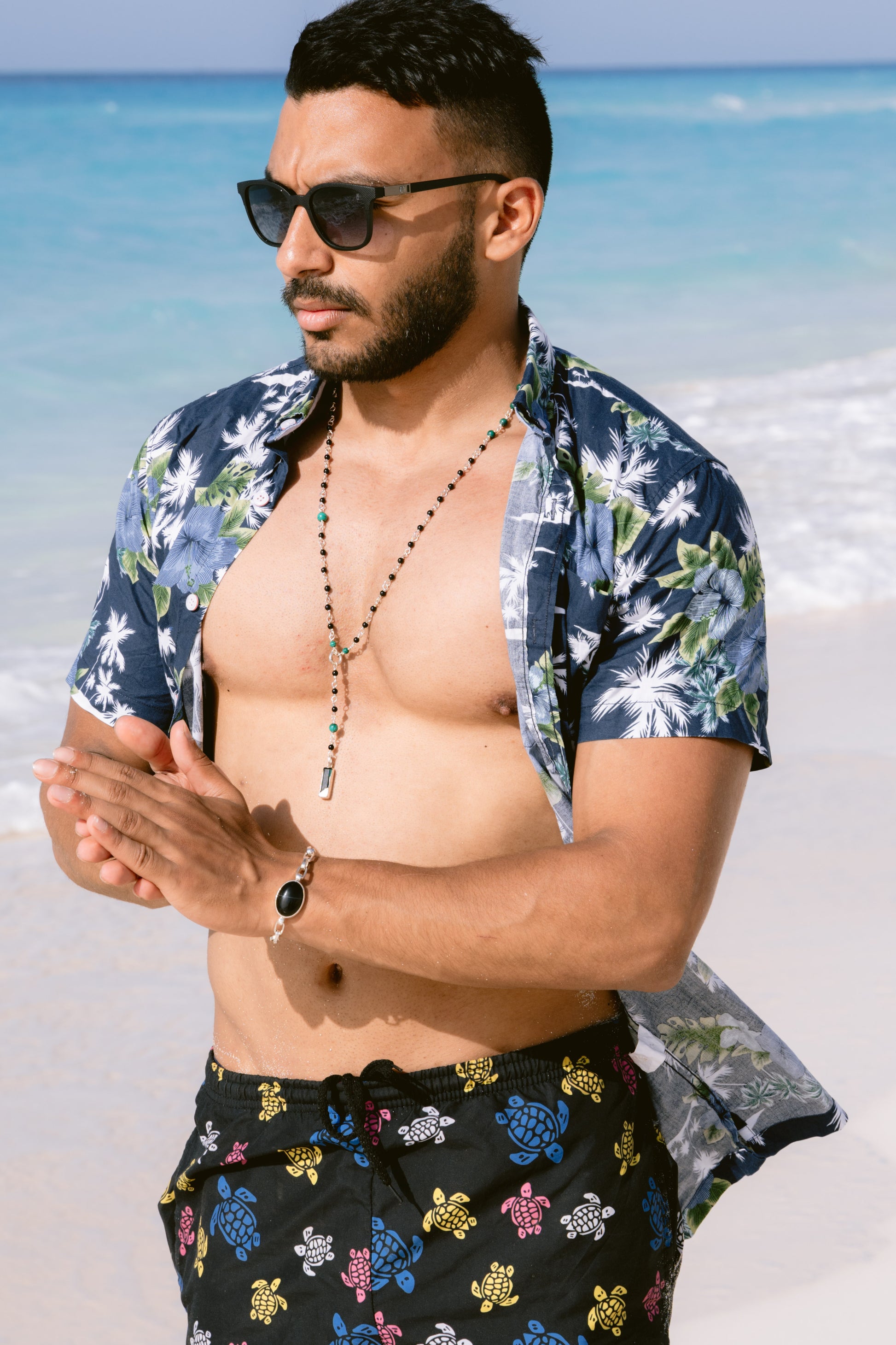 Get ready to shine on your next night out with this rosary-style necklace, featuring bold black onyx, vibrant green malachite, and sparkling green tourmaline. It’s the perfect playful mix to elevate your club look and keep the good vibes flowing all night long.