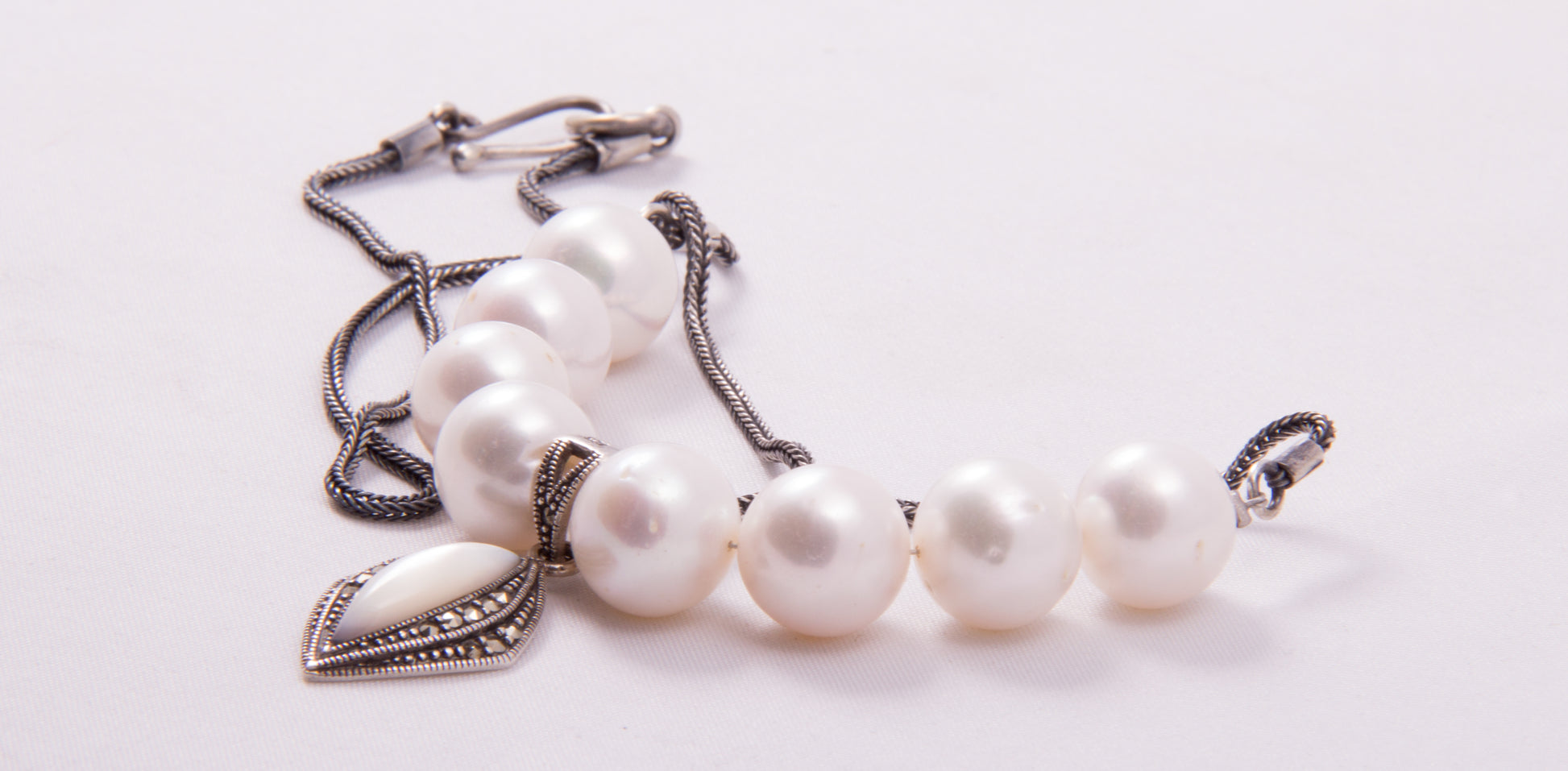 Experience elegant sophistication with this stunning necklace featuring a lustrous mother of pearl pendant. Suspended on a unique strand combining half large pearls and half sleek silver, this piece offers a perfect balance of classic beauty and modern design. Ideal for adding a refined and graceful touch to any outfit, it’s a timeless accessory that highlights your natural elegance.