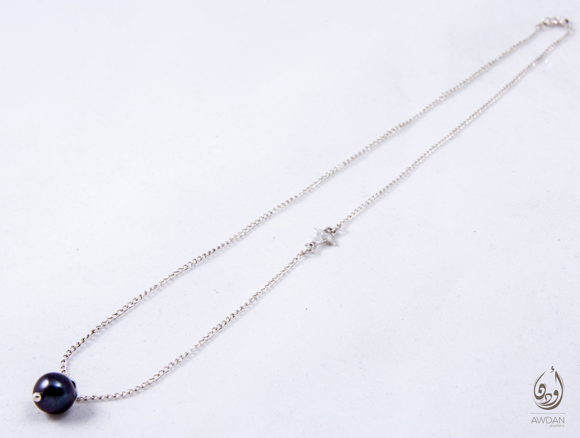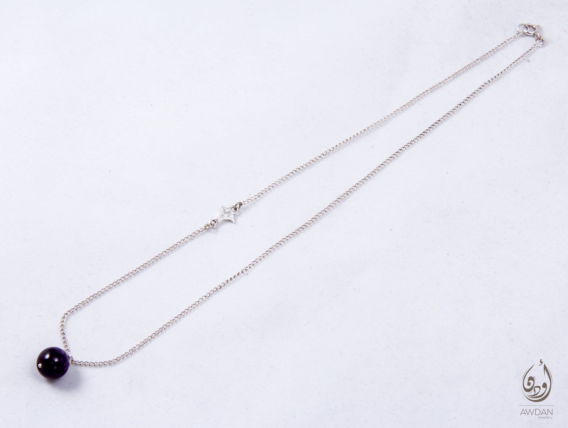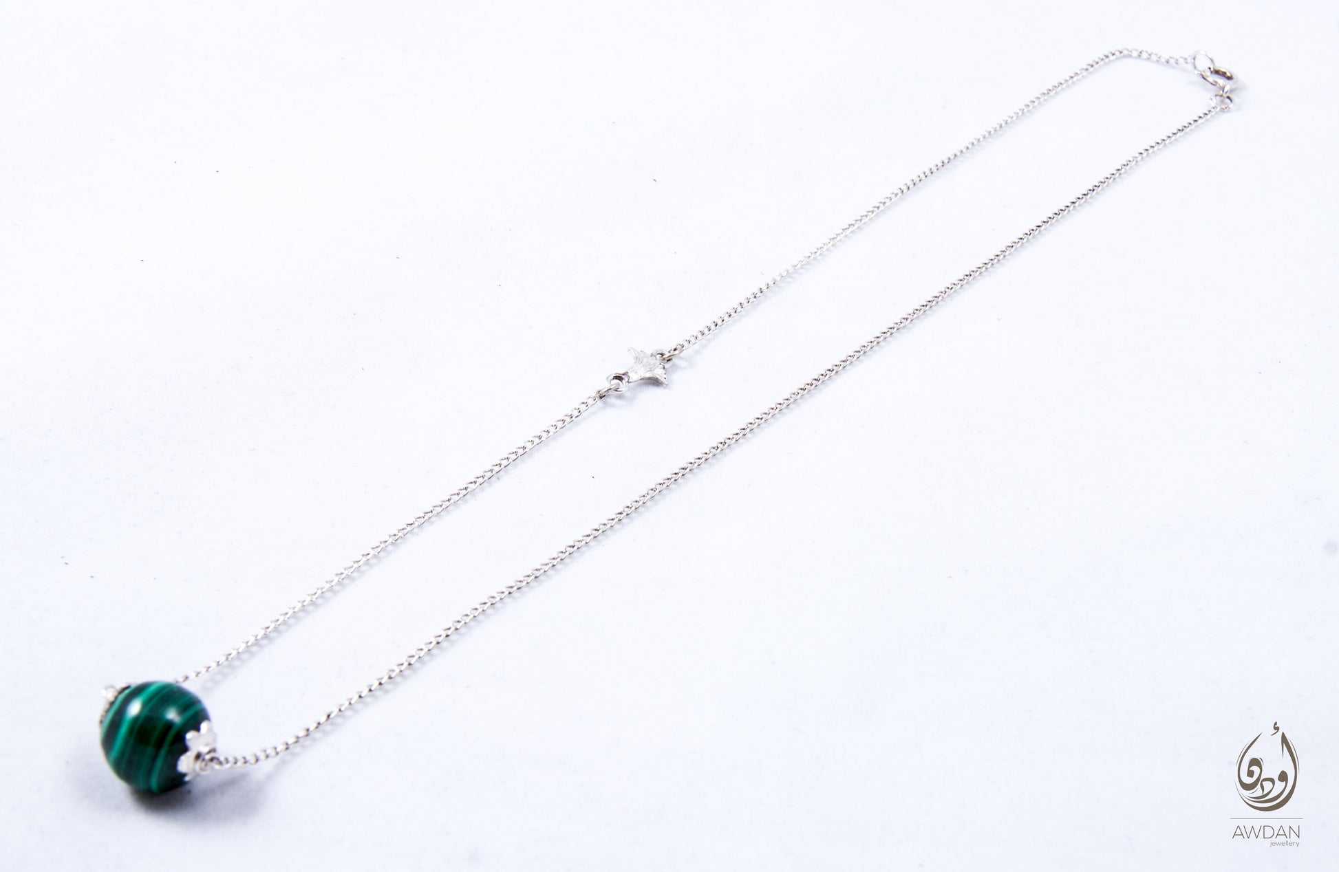 This elegant necklace features a stunning stone bead pendant, complemented by a delicate lotus charm on the side. The combination of natural beauty and symbolic design adds a refined touch of sophistication, making it a perfect accessory to elevate your look with timeless elegance and meaningful style.